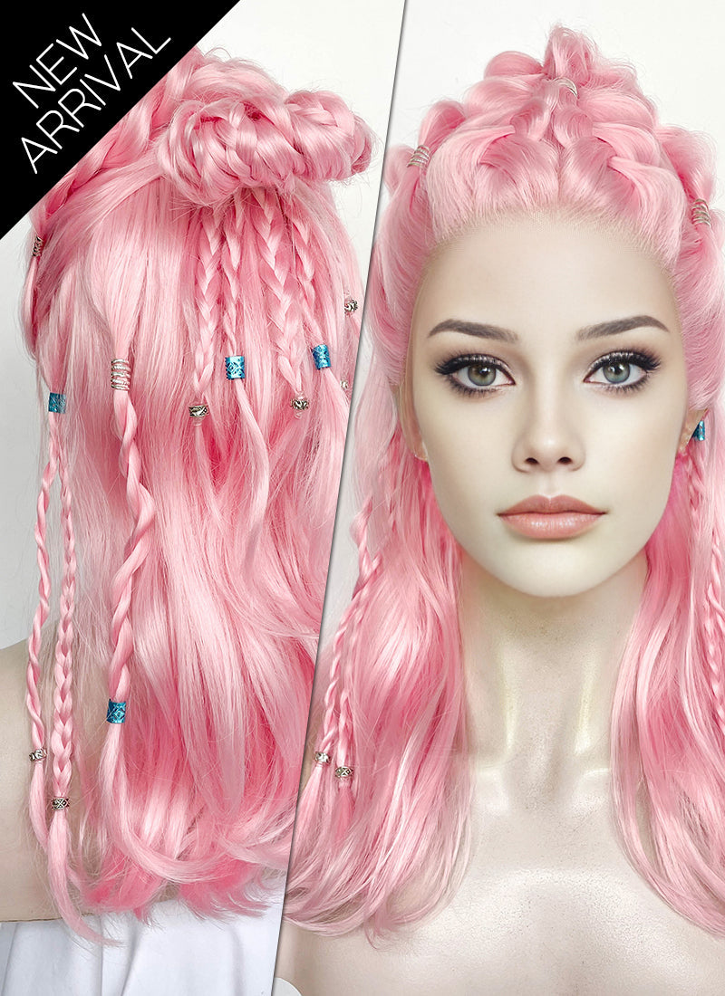 Pastel Pink Braided Lace Front Synthetic Wig LF2511