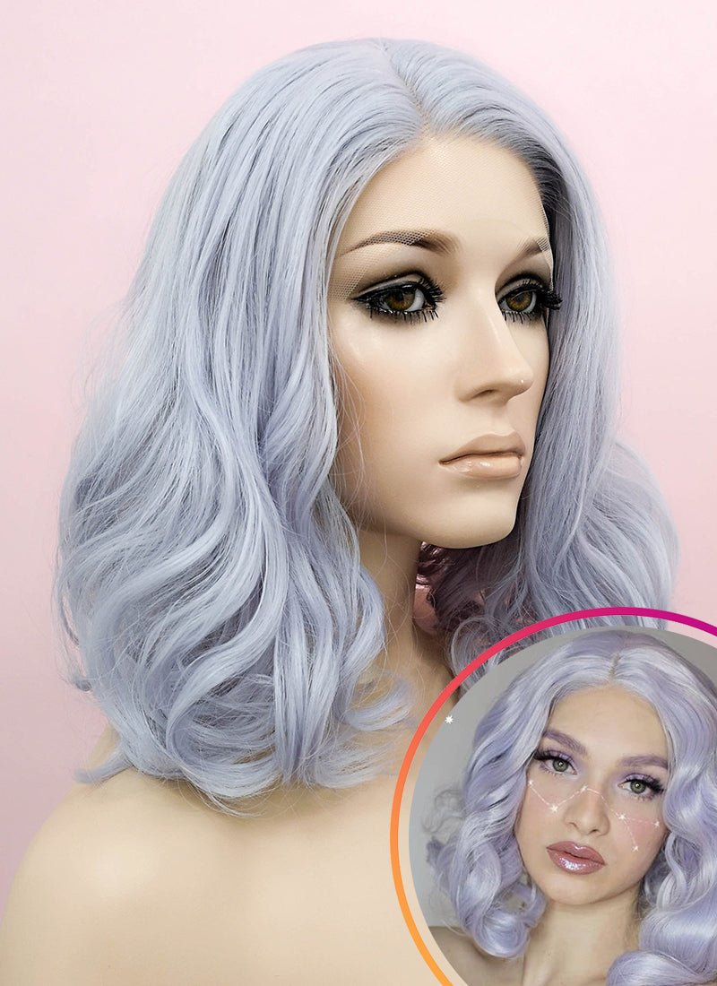 Pastel Blondish Grey Wavy Bob Lace Front Synthetic Wig LF369 -