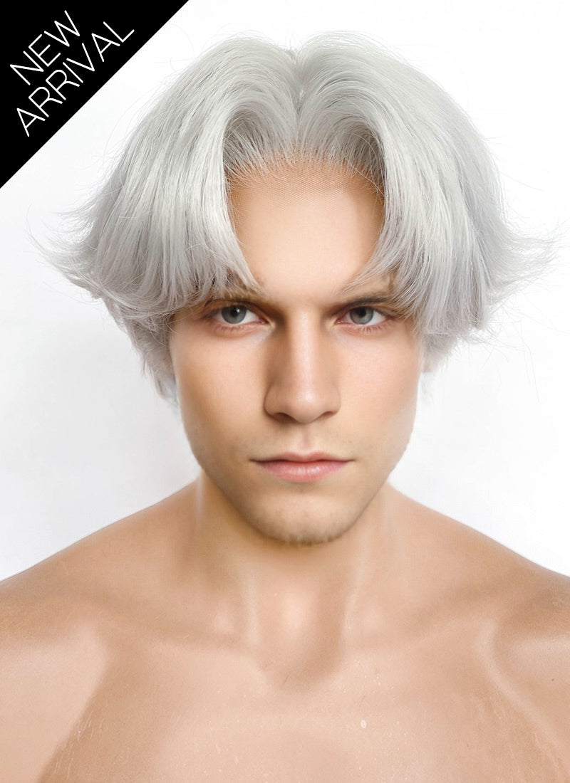 Light Grey Wavy Lace Front Synthetic Men's Wig LW4020 -