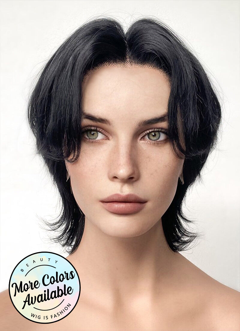 Jet Black Wolf Cut Lace Front Synthetic Men's Wig LF6016