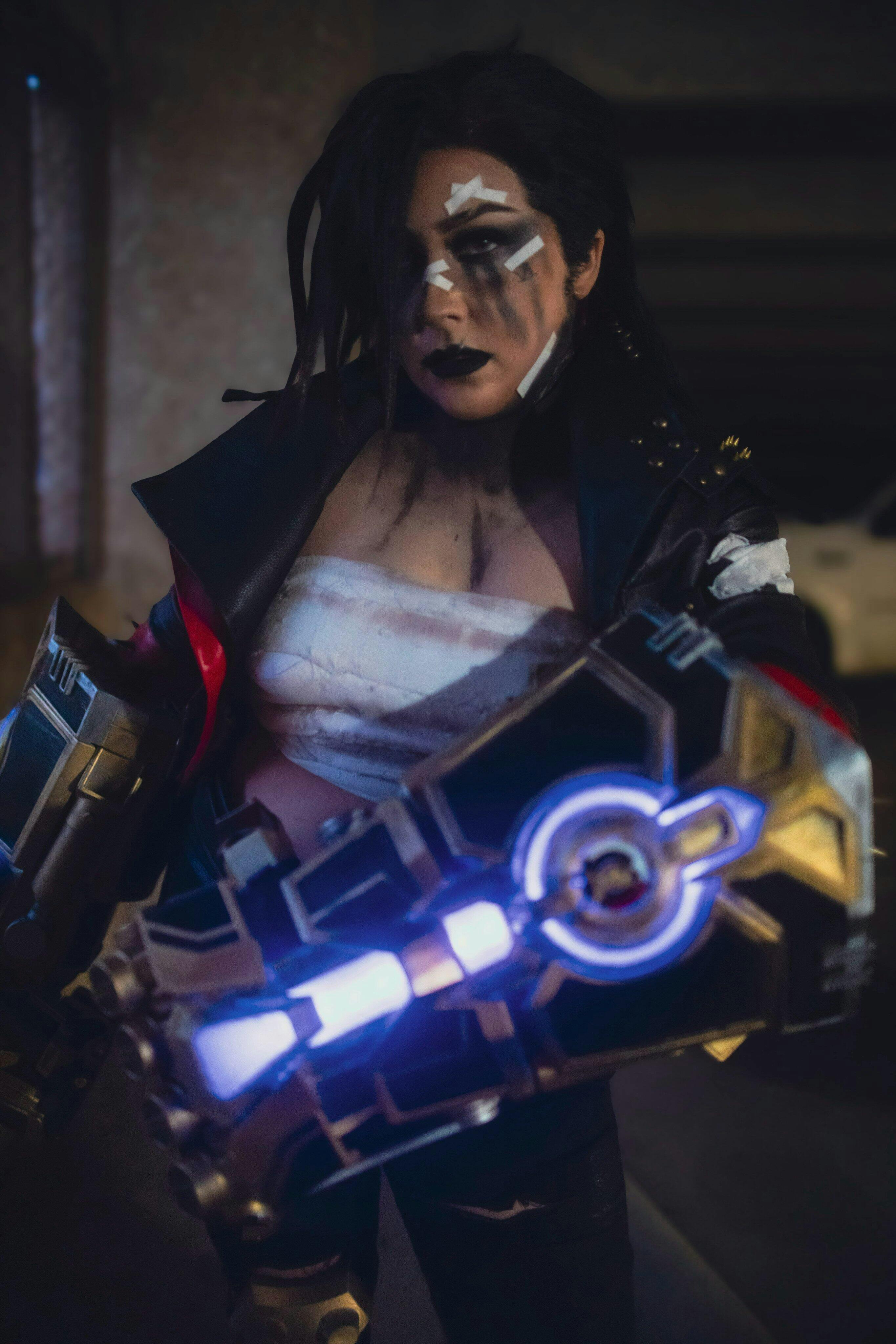 League of Legends LOL Arcane Vi Black Mixed Red Straight Lace Front Synthetic Wig LF6098