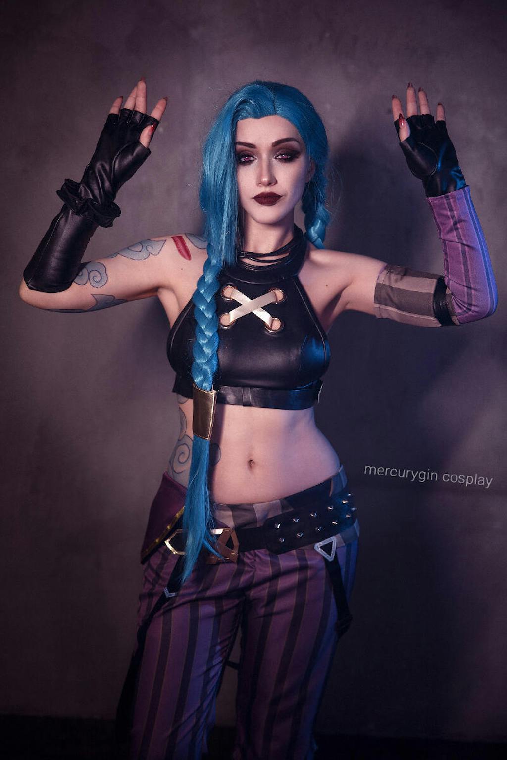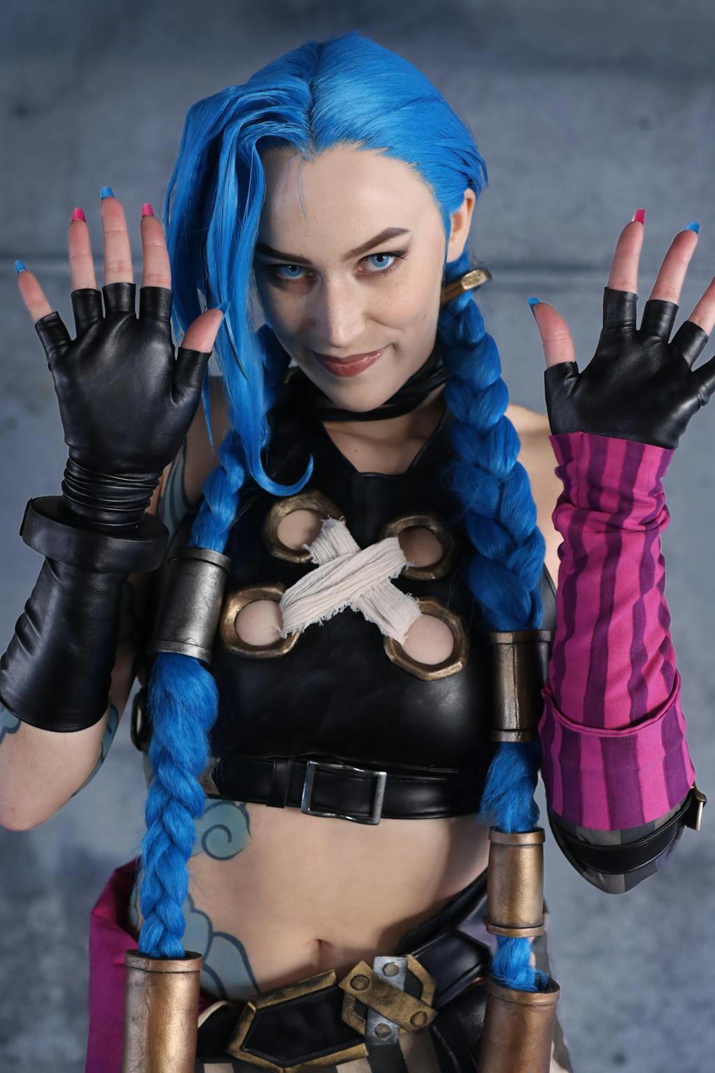 League of Legends LOL Arcane Jinx Turquoise Blue Straight Lace Front Synthetic Wig LN6020